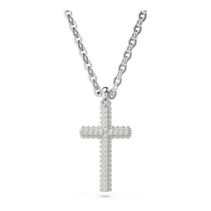 Insigne Pendant, Pavé, Cross, White, Rhodium Plating