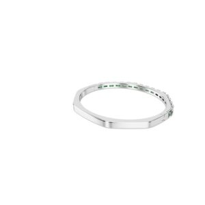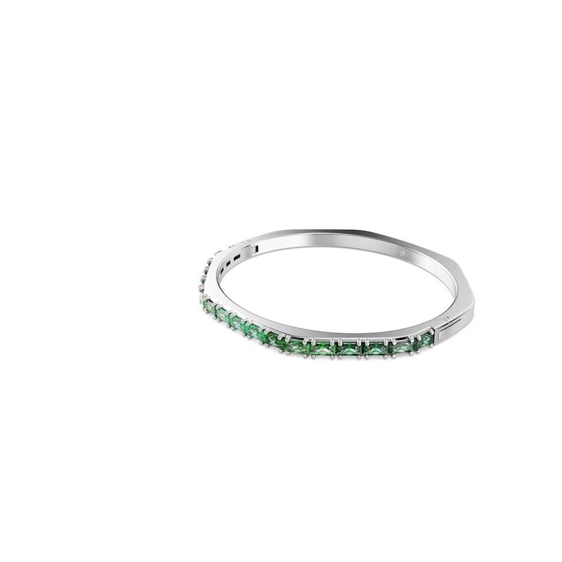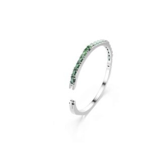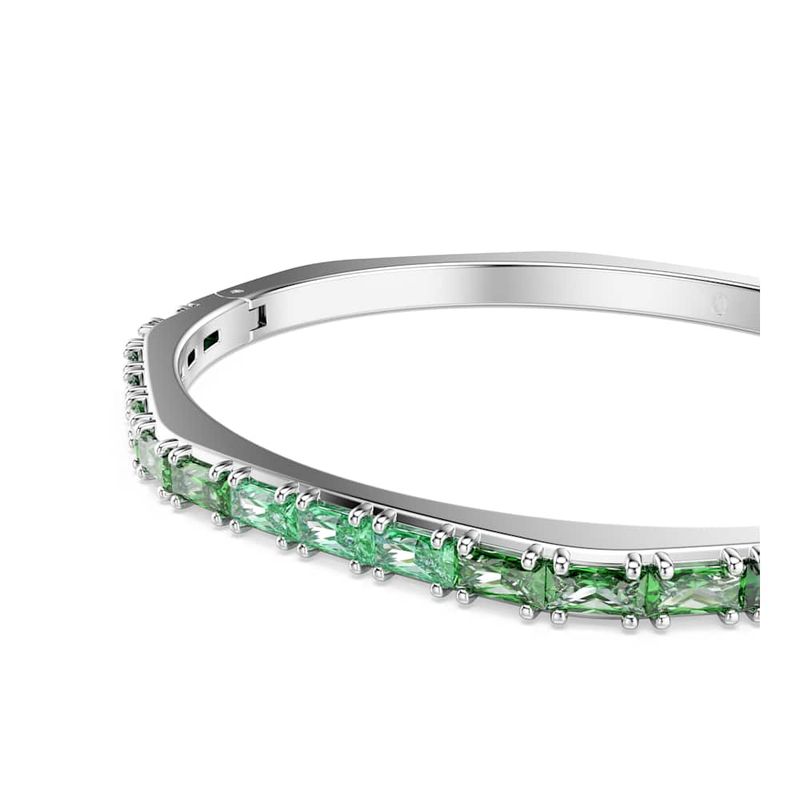 Elevate your everyday look with this Matrix hinged bracelet. This rhodium-plated design is crafted in Swarovski’s iconic octagonal shape and embellished with a playful gradient of horizontally set baguette-cut green Swarovski Zirconia. Perfect for layering with other coordinating Matrix bracelets, it’s a burst of Swarovski’s signature color to express your most vibrant side.