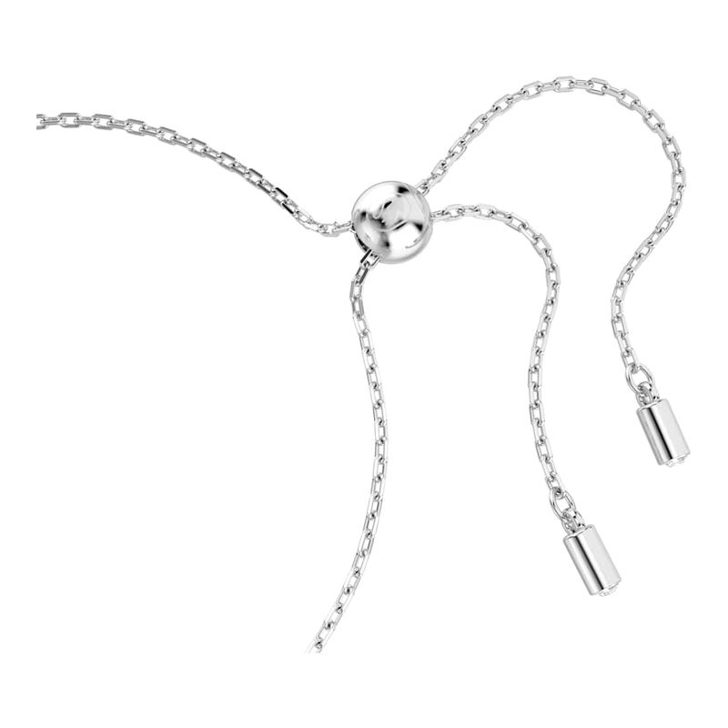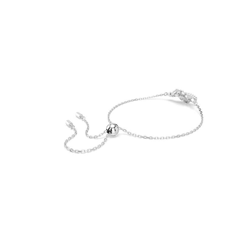 This woven bracelet is a pure expression of light and unity. Featuring a chain with an adjustable sliding mechanism, the rhodium-plated ribbon-inspired motif features a knotted baguette-cut Swarovski Zirconia embellishment. Delicate and elegant, it’s an artistic choice to wear with matching accessories from the same family.