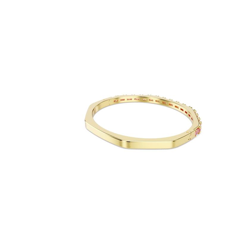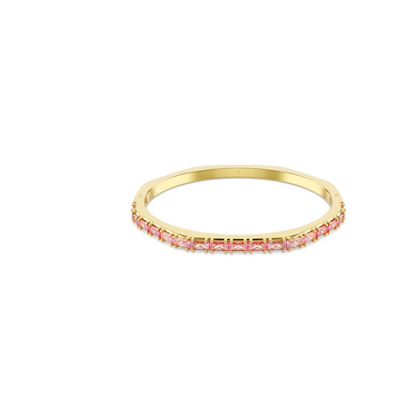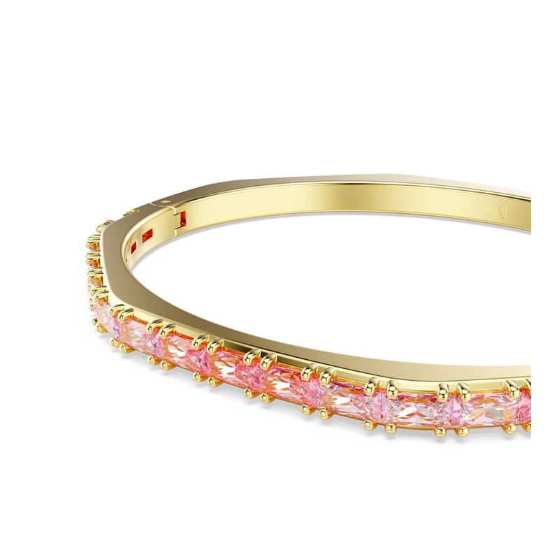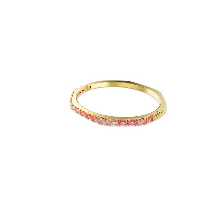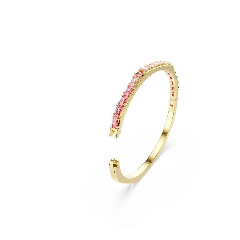 Elevate your everyday look with this Matrix hinged bracelet. This gold-tone plated design is crafted in Swarovski’s iconic octagonal shape and embellished with a playful gradient of horizontally set pink baguette-cut Swarovski Zirconia. Perfect for layering with other coordinating Matrix bracelets, it’s a burst of Swarovski’s signature color to express your most vibrant side.