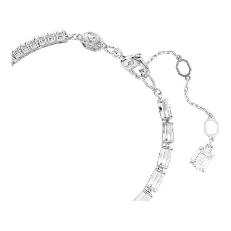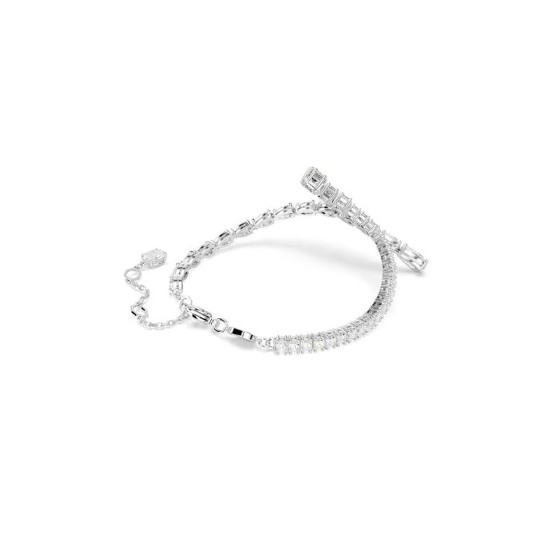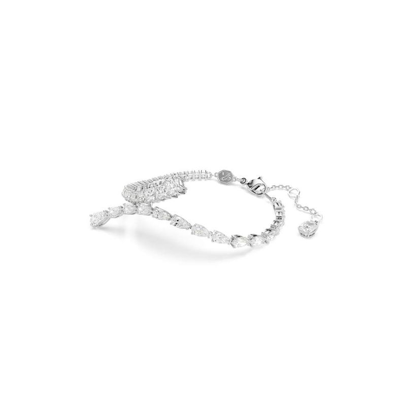 Enhance any look with the exquisite radiance of this Matrix bracelet. This rhodium-plated design is embellished with a cluster of pear- and square-cut clear Swarovski crystals and Swarovski Zirconias in various sizes that add unexpected dimension to the silhouette. The lobster clasp ensures an easy fit. Layer this bracelet with pieces from the same family for a playful and whimsical look.