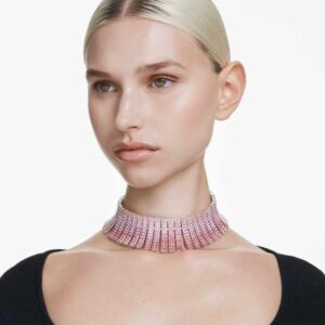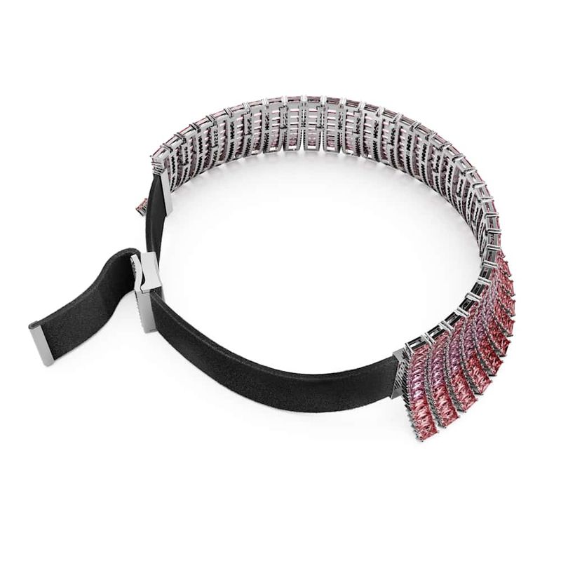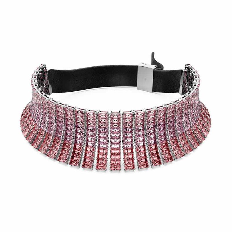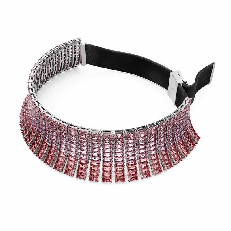 Brilliant, colorful, and truly unforgettable. This striking choker from the Matrix family is created for radiant self-expression. The rhodium-plated design features a concave shape that wraps around the neck with rows of baguette-cut Swarovski Zirconia in multiple shades of pink. A perfect example of Swarovski’s expert craftsmanship that will add layers of extravagant playfulness to your look.