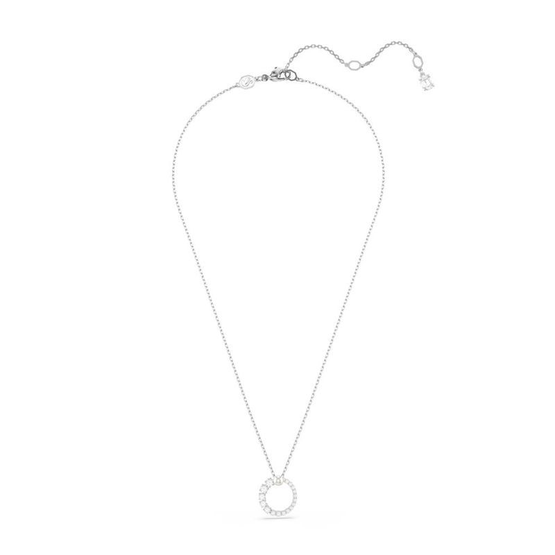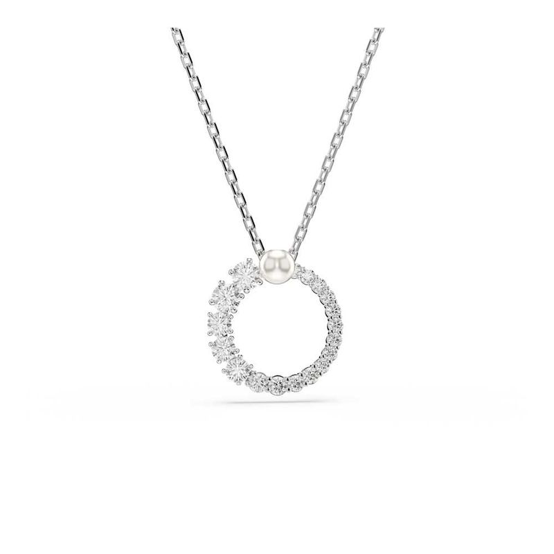 Matrix Pendant, Crystal Pearl, Round Cut, White, Rhodium Plating