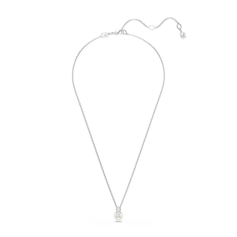 Constella Necklace, Crystal Pearl, Round Cuts, White, Rhodium Plated