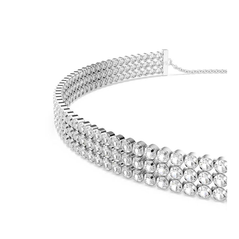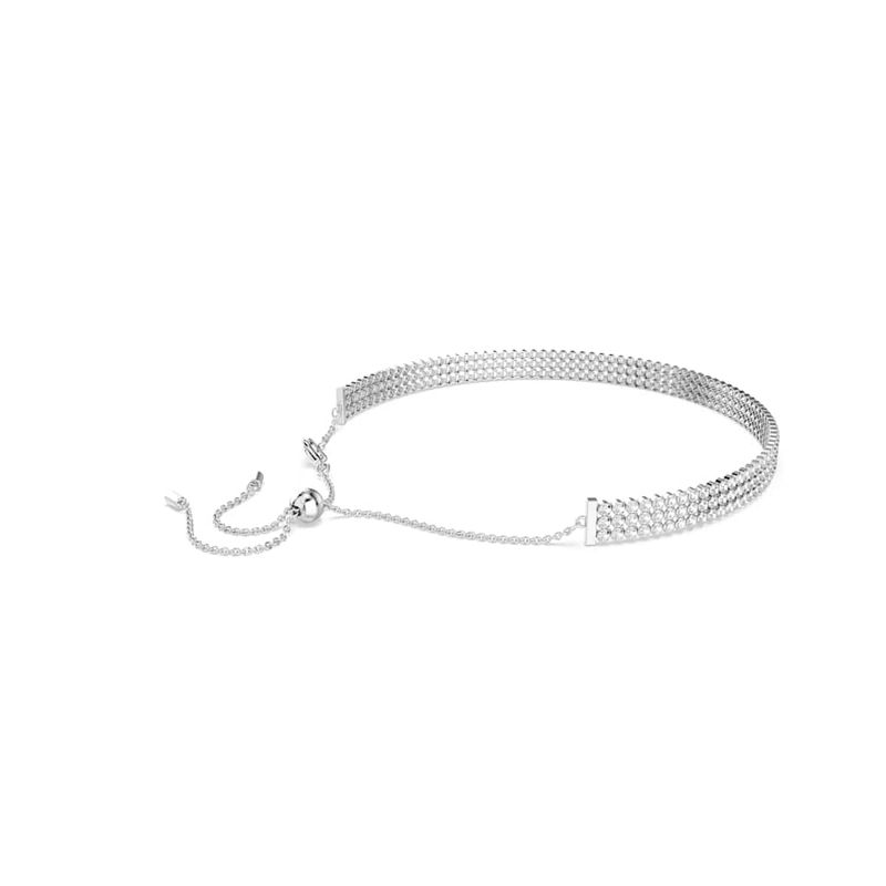 Demonstrating Swarovski’s mastery of light, this exquisite choker is a true statement of elegance. The rhodium-plated design features three rows of cupchain stones set with round-cut clear Swarovski Zirconia. A sliding ball clasp allows for easy adjustment to your size. Wear this choker with a matching Matrix bracelet for a luxurious look.