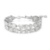 Make this extraordinary double-row bracelet a defining piece in your jewelry collection. The rhodium-plated design combines a composition of prong-set Swarovski Zirconia in a spectacular mix of shapes and is finished with a lobster clasp closure. For added luxury, the dangling extender features a Swarovski Zirconia chain. Pure elegance for your evening look, or a wonderful gift for that special someone.