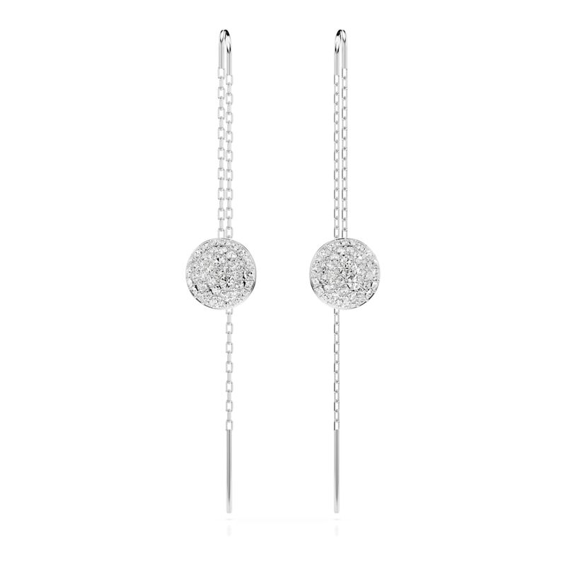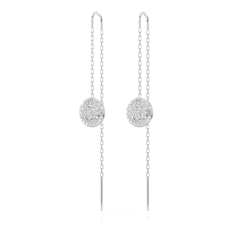 These dazzling Meteora earrings are inspired by the cosmos and will fill your style with wonder. Each rhodium-plated piece features a dangling chain on either side, along with a domed meteor motif beautifully embellished with round clear crystals. A simple way to add a touch of light to your look.