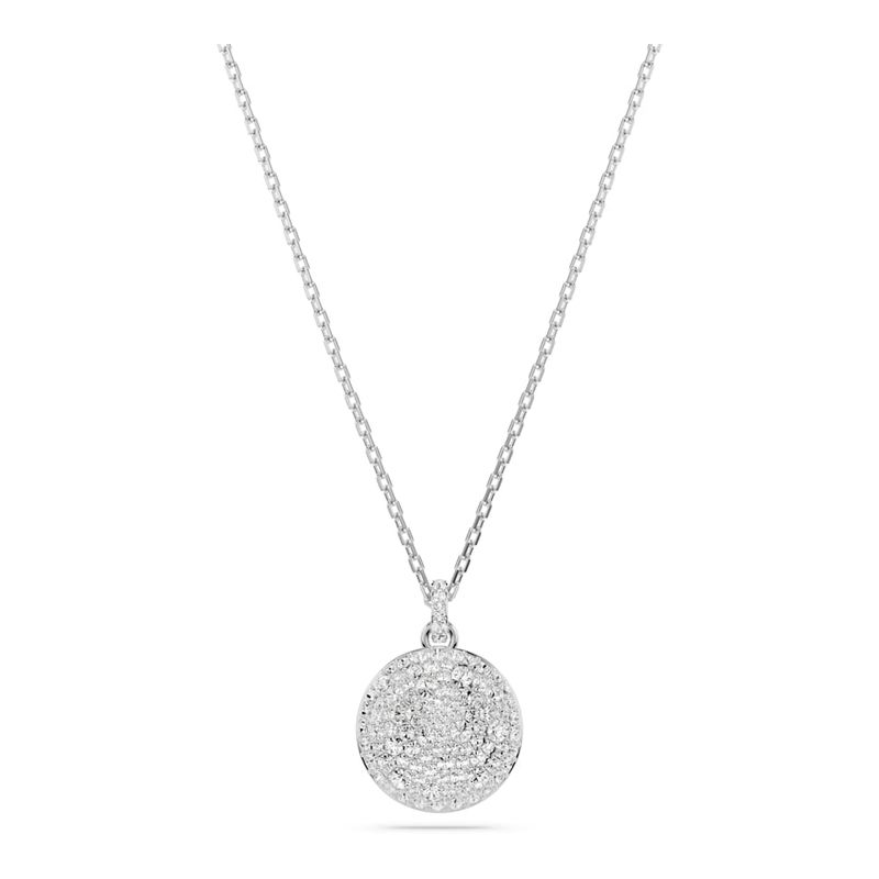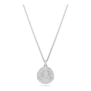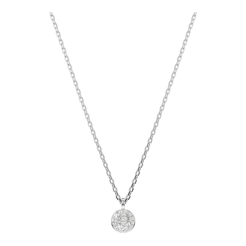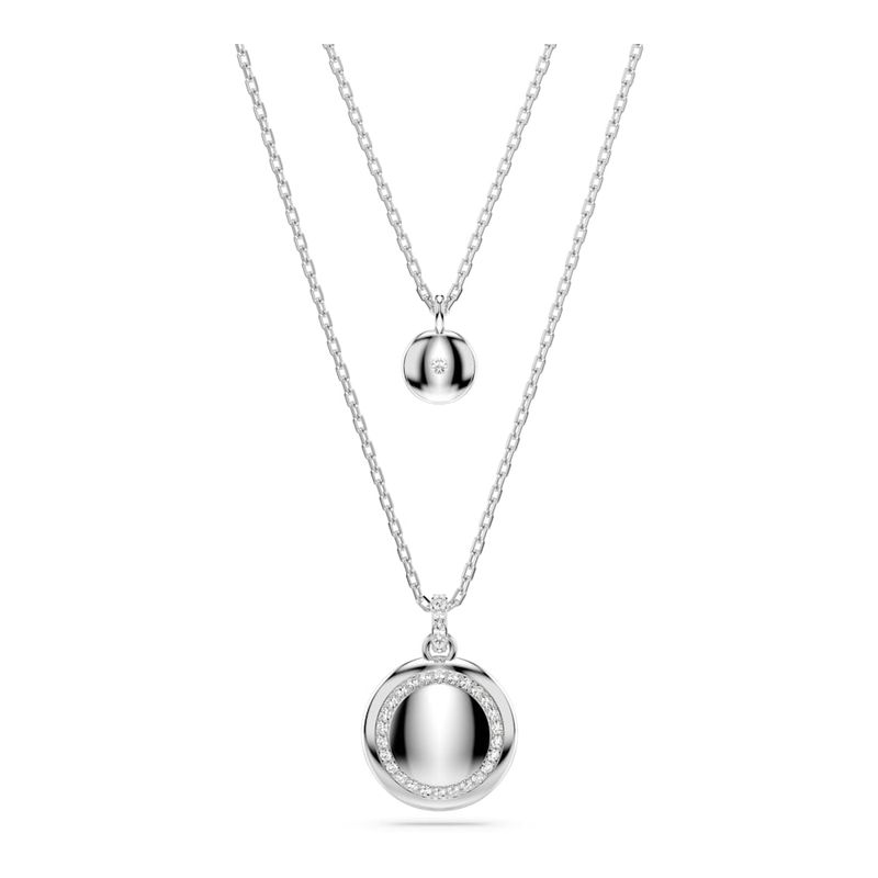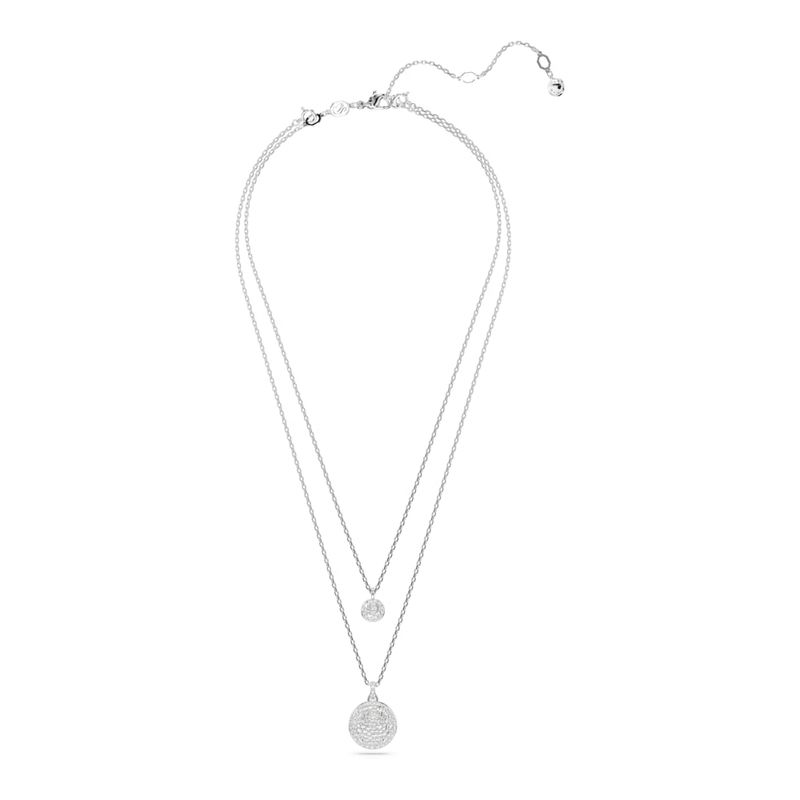 This sparkling layered pendant is the perfect way to brighten your look. The rhodium-plated design features two chains, each featuring a domed meteor motif beautifully embellished with clear round crystals of varying sizes set in snow pavé. For added versatility, the pendant can be worn on its reverse side, showcasing a halo of crystals around the larger motif and a single crystal in the center of the smaller motif. A wonderful gift for yourself or someone special.