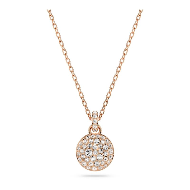 This galaxy-inspired pendant will add a dazzling impact to any look. The rose gold-tone coated design comes on a delicate chain with a lobster clasp and features a domed meteor motif beautifully embellished with round clear crystals in varying sizes set in snow pavé. Wear it as a wonderful piece of light-catching cheer.