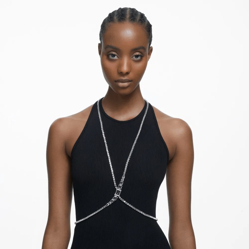 Millenia Body Chain, Square Cut, White, Rhodium Plated