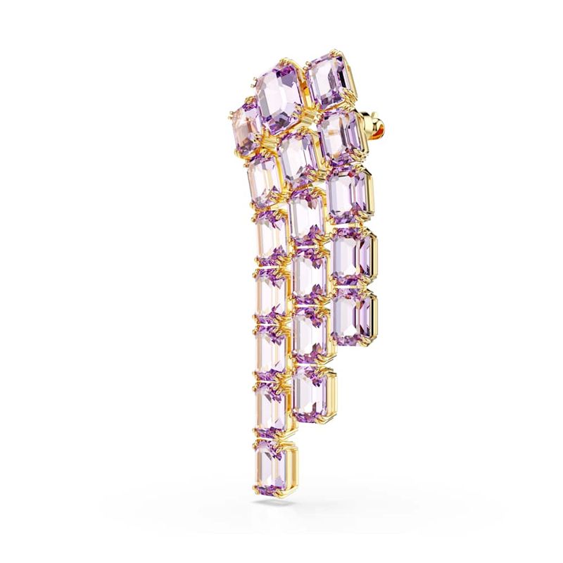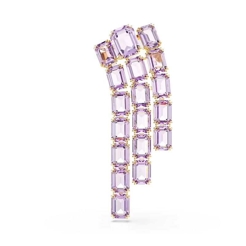Face the day in vibrant colors with this vibrant Millenia brooch. The striking gold-tone plated design comes alive with cascading strands of octagonal-cut purple crystals. A striking accessory that instantly brightens any outfit.