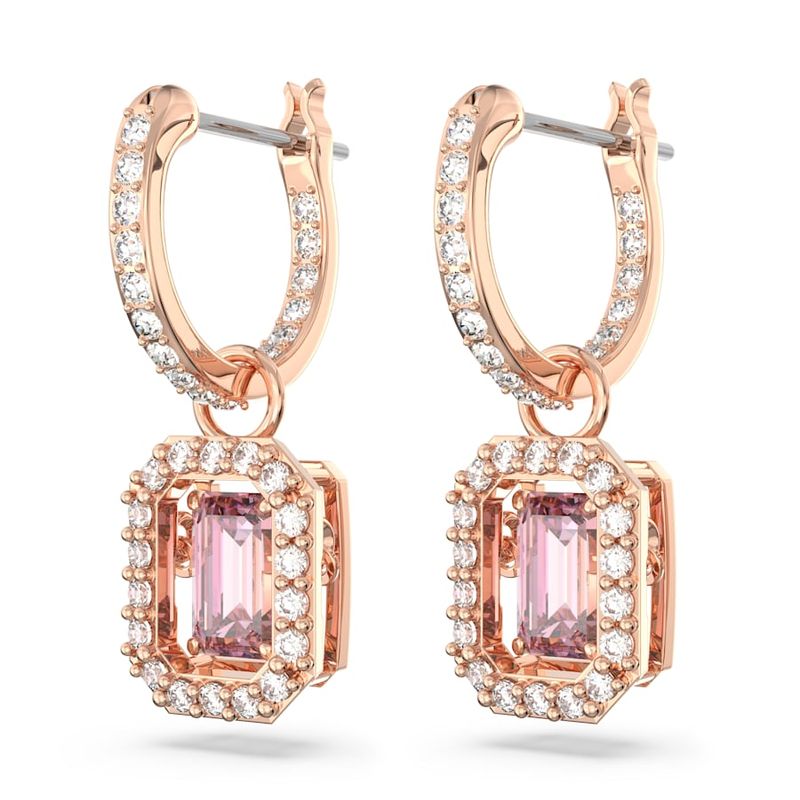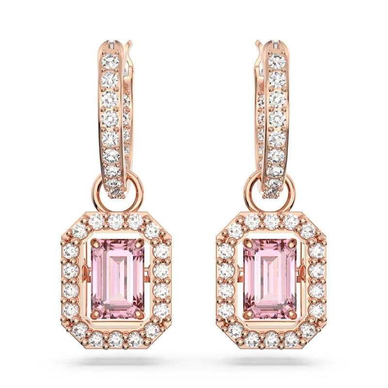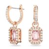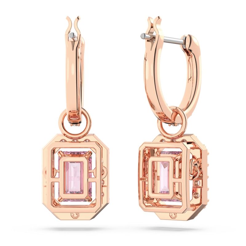 These stunning Millenia drop earrings embrace the art of movement with their central Dancing Stones. The octagonal-cut pink stones are expertly suspended in pavé-set frames that hang from mini pavé hoops finished with a rose gold-tone finish. However you wear them, you’ll be the talk of the evening.