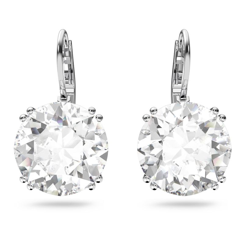 Millenia Earrings, Round-cut Crystal, White, Rhodium-plated
