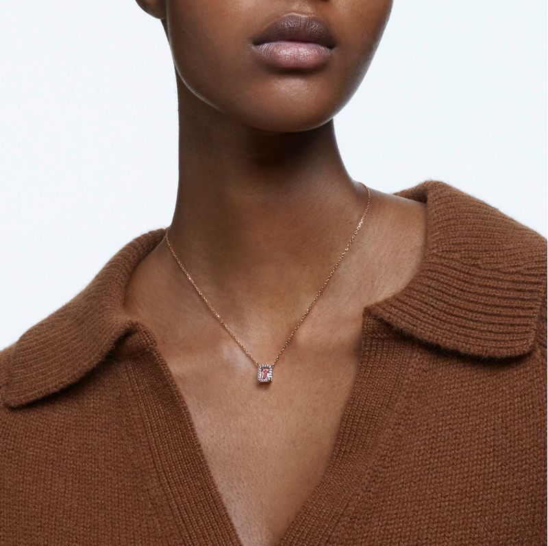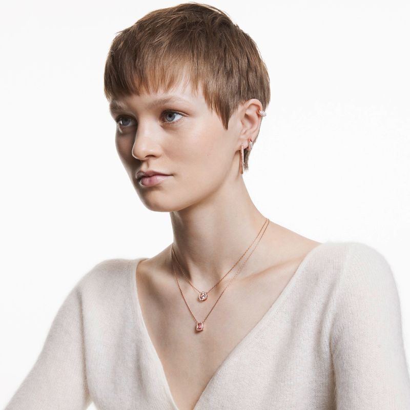 Dynamic design and timeless elegance combine in this stunning pendant. A centerpiece for any look, the octagonal-cut pink stone stands out in its setting with smaller crystals and hangs on a delicate rose gold-plated chain. It adds a feminine touch to casual or formal looks. This pendant belongs to the Millenia family, designed by Creative Director Giovanna Engelbert for Collection II.