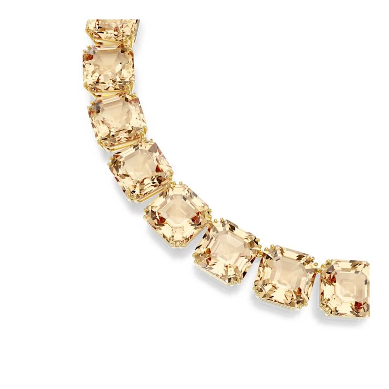 Millenia Tennis Necklace, Oversized Crystals, Octagonal Cut, Caramel, Gold-Tone Plating