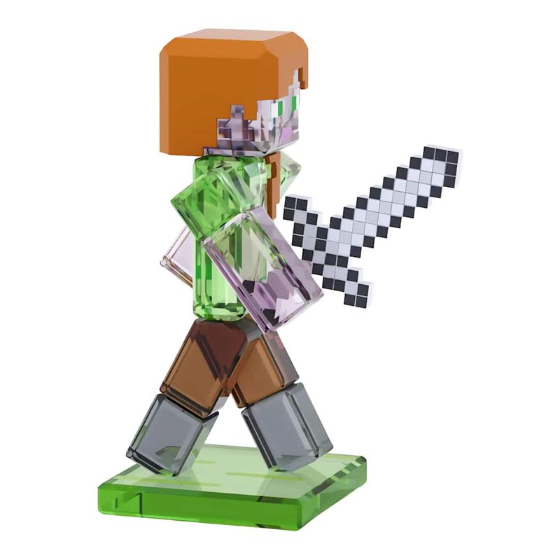 Swarovski and Minecraft have teamed up to bring the whimsical charm of the Overworld to life. Inspired by the fearless heroine, this Minecraft Alex figurine is crafted from fully cut crystals to replicate Minecraft’s iconic blocky style. Wearing her signature green tunic and brown pants, Alex sets off on an adventure armed with her trusty sword. The figurine features 426 facets, as well as metallic detailing for Alex’s sword and red hair, making it a gift sure to delight even the most discerning Minecrafter. Because adventures are better when shared, Alex can be combined with other figurines in the Swarovski Minecraft collection. Decorative item. Not a toy. Not suitable for children under 15 years.