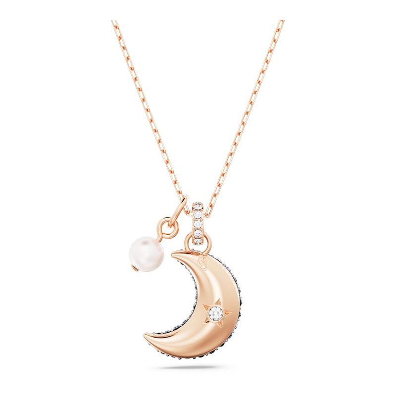 Moon Pendant, Moon, Multicolor, Rose gold-tone plated