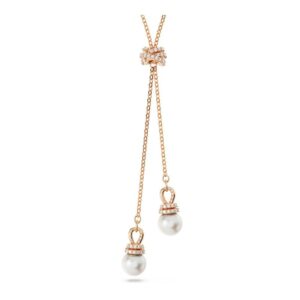 This elegant pendant from the Originally family is crafted to offer you simple elegance. The rose gold-tone plated chain joins at the center in a knot with a clear Swarovski Zirconia and then splits into two strands, each with a sparkling Swarovski Crystal Pearl at the end. Dazzling pavé finishes each pearl to enhance its brilliance. A lovely gift for yourself or someone special.