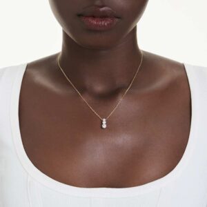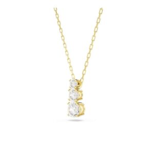 Inspired by the concept of eternal love, this romantic pendant exudes timeless elegance. The trio of clear Swarovski Zirconia dangles majestically from a gold-tone plated chain, creating a poignant accessory. It’s the perfect gift for a loved one and can be worn with matching earrings or a ring.