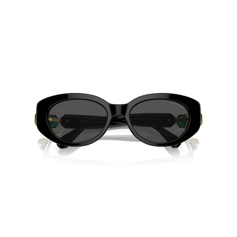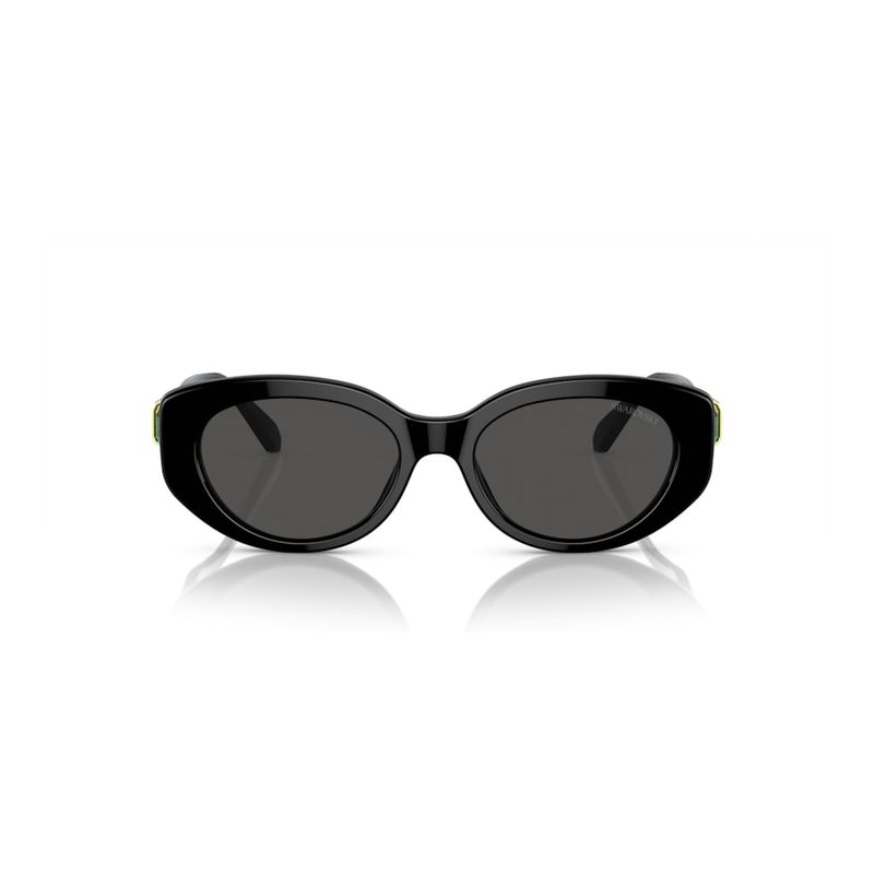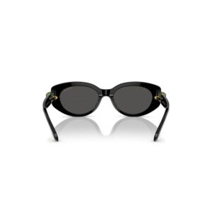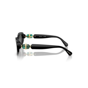 Inspired by our bold Lucent family, these cat-eye sunglasses make a bold statement. The frame is crafted from black acetate and features black lenses and octagonal-cut green crystals on each temple. Gold-tone accents surround the stones for a luxurious touch. Add this classic look to your wardrobe and take on the day in style.