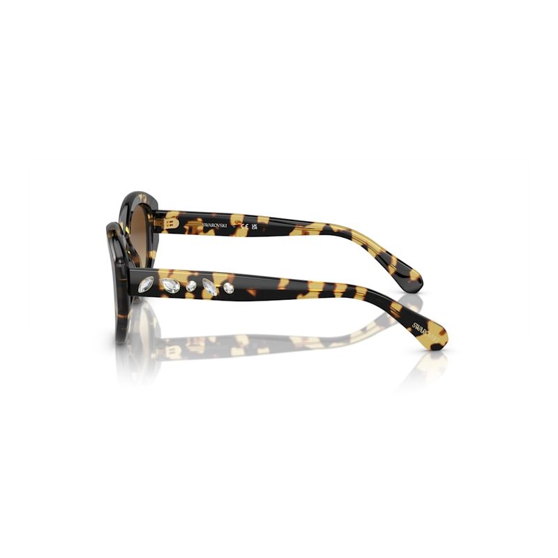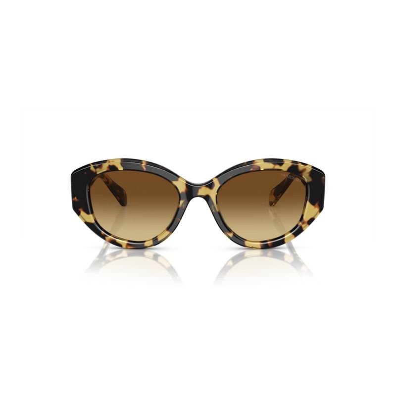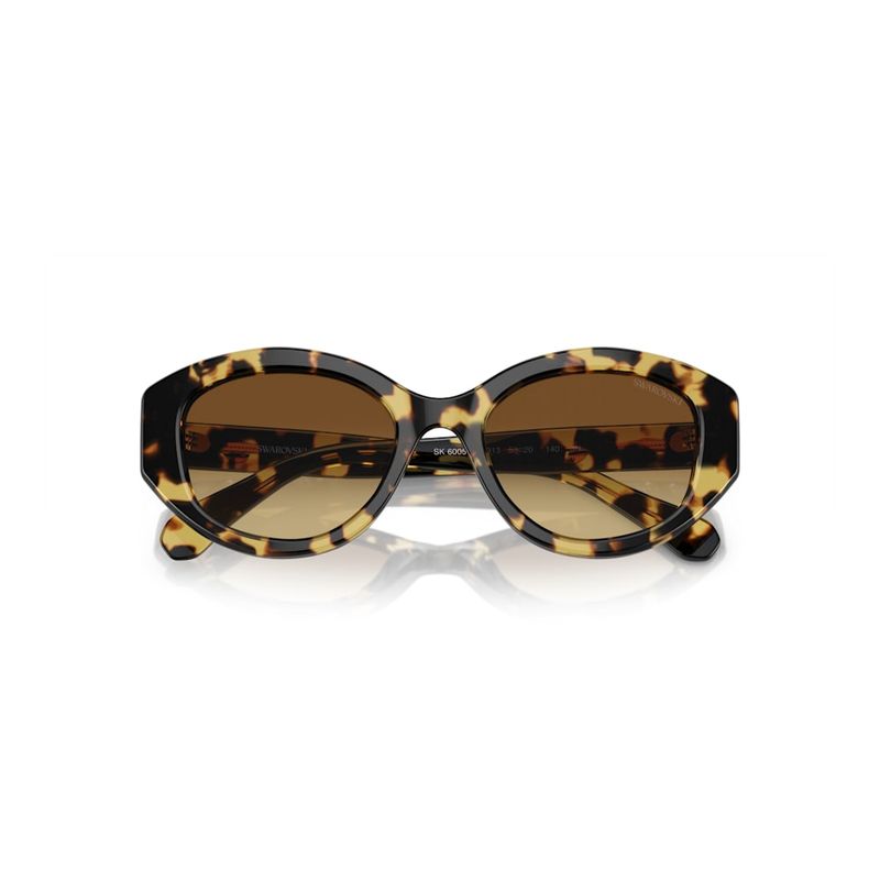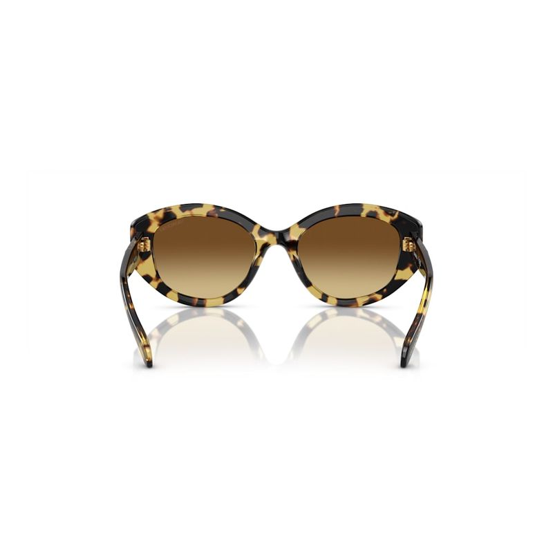 Swarovski inspiration meets elegant luxury in these dazzling sunglasses. The tubular cat-eye design features a Havana acetate frame with a series of mixed-cut stones in a gold-tone setting along the temples. Inspired by the Dextera family and finished with gradient brown lenses, these glasses are the perfect choice when a bold look is called for.