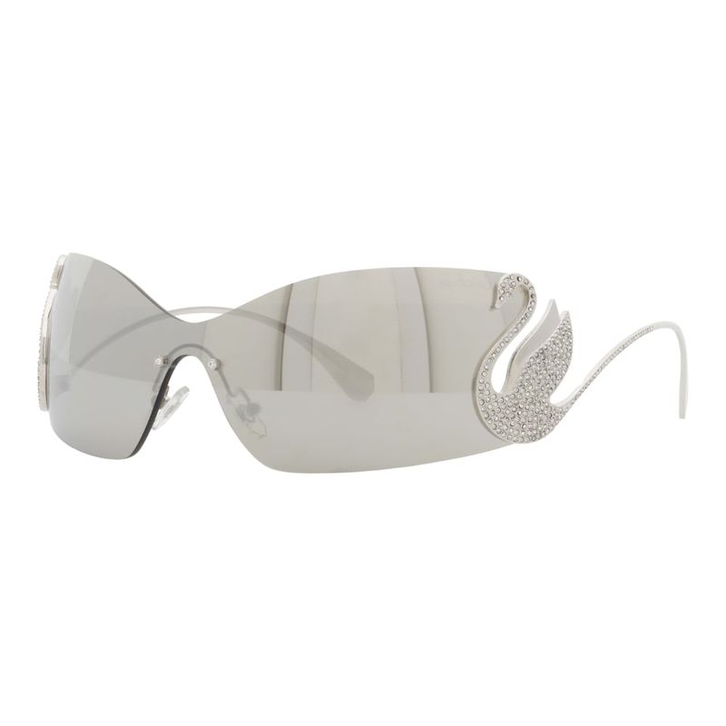 These distinctive Swarovski sunglasses are inspired by the iconic swan, which represents love, joy, and eternal beauty. This extraordinary design features silver-mirrored, mask-shaped lenses, along with a silver-tone swan silhouette on each temple, elegantly curved and adorned with a multitude of clear pavé-set crystals. A stylish way to pay homage to Swarovski’s most famous emblem.