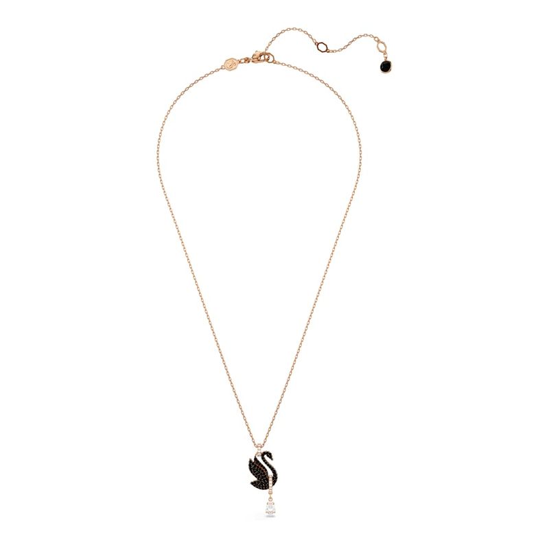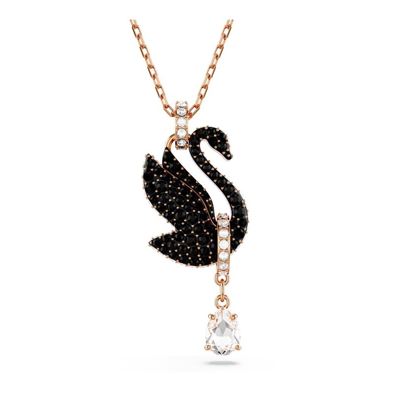 Swarovski Iconic Swan Pendant, Black, Rose gold-tone plated