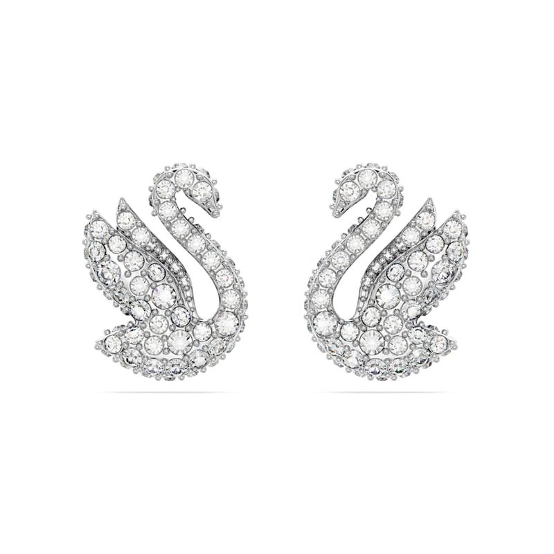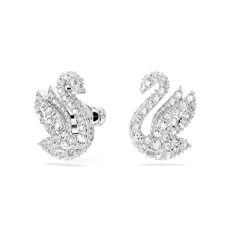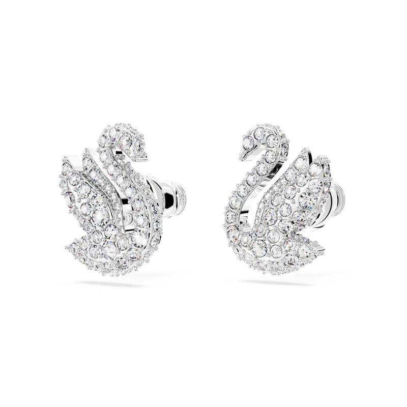 Swarovski Iconic Swan Stud Earrings, White, Rhodium Plated