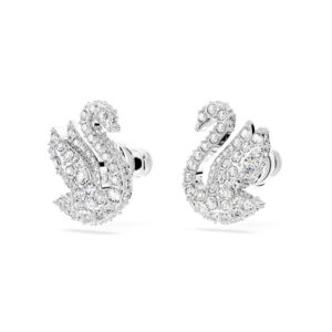 Swarovski’s iconic swan has been beautifully recreated in this pair of stud earrings. Designed with wings fluttering, poised for flight and adorned with sparkling clear pavé crystals, it shines atop a gleaming rhodium plating. Choose this style and be inspired every day by its delicate crystal.