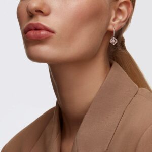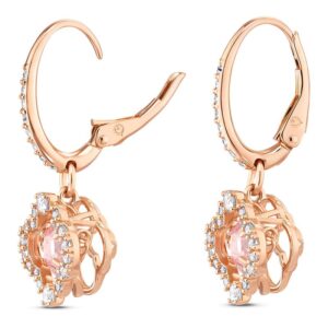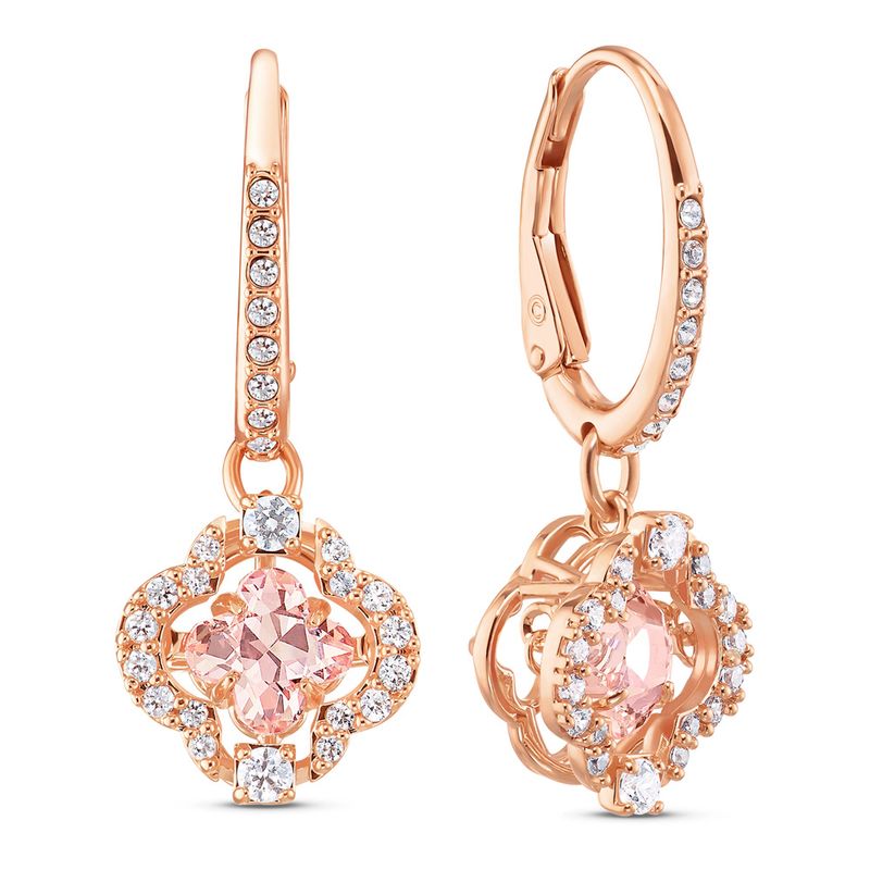 This pair of Swarovski earrings features a beautiful floral design. Each piece is adorned with a movable pink stone, perfectly complemented by a rose gold-tone frame and clear crystal pavé. An ideal gift for someone special.