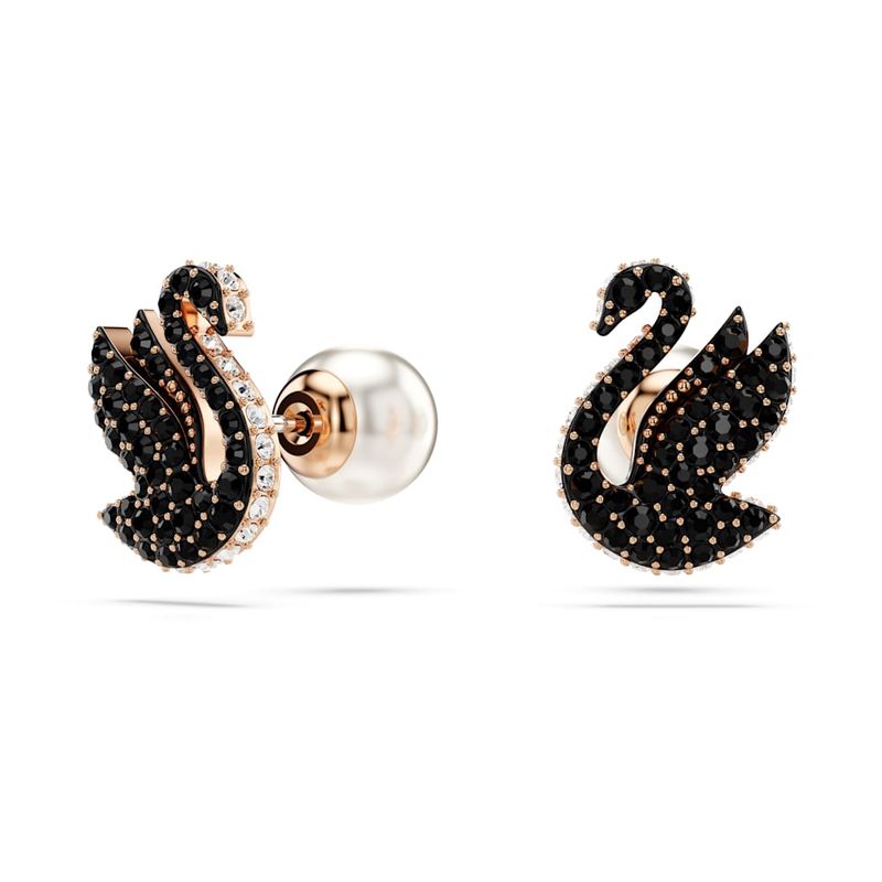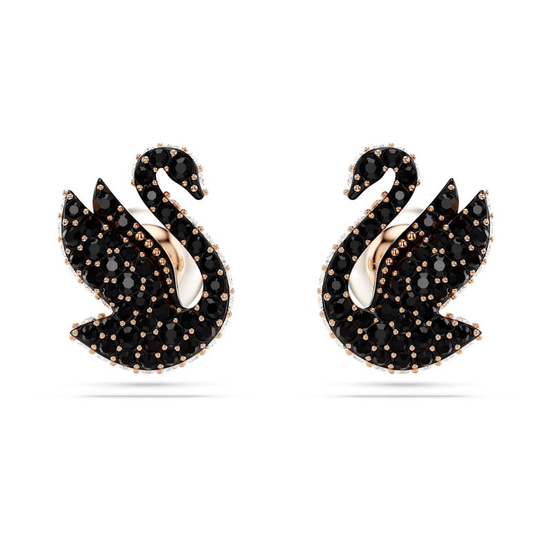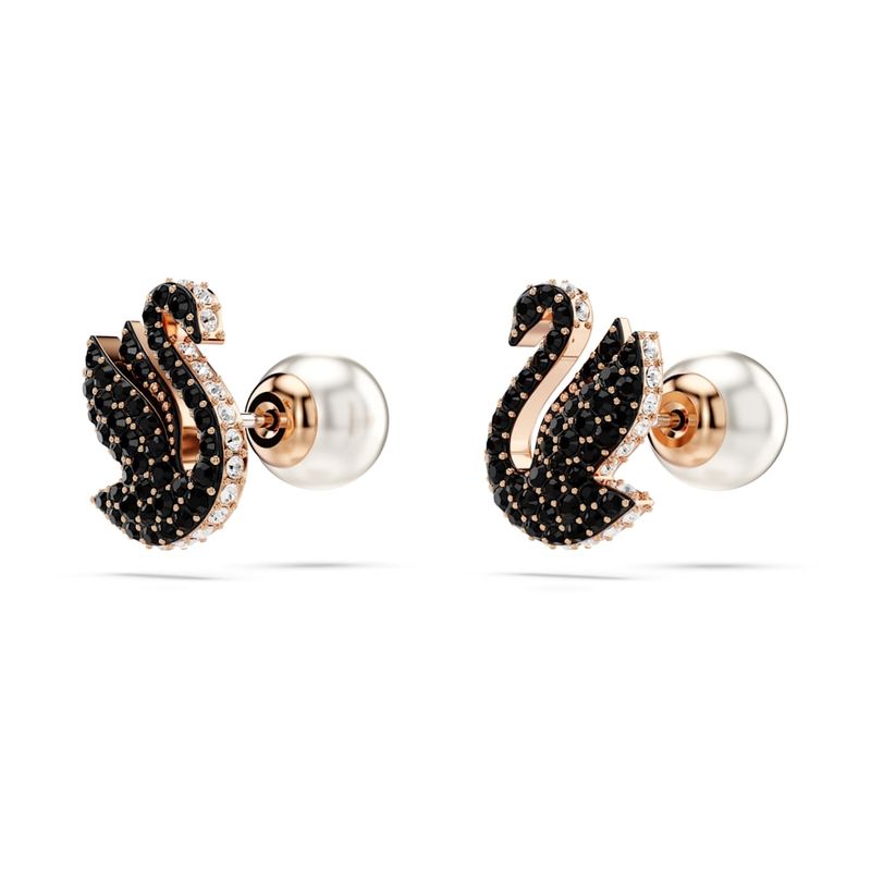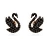 Swarovski Swan Stud Earrings, Black, Rose Gold Overlay