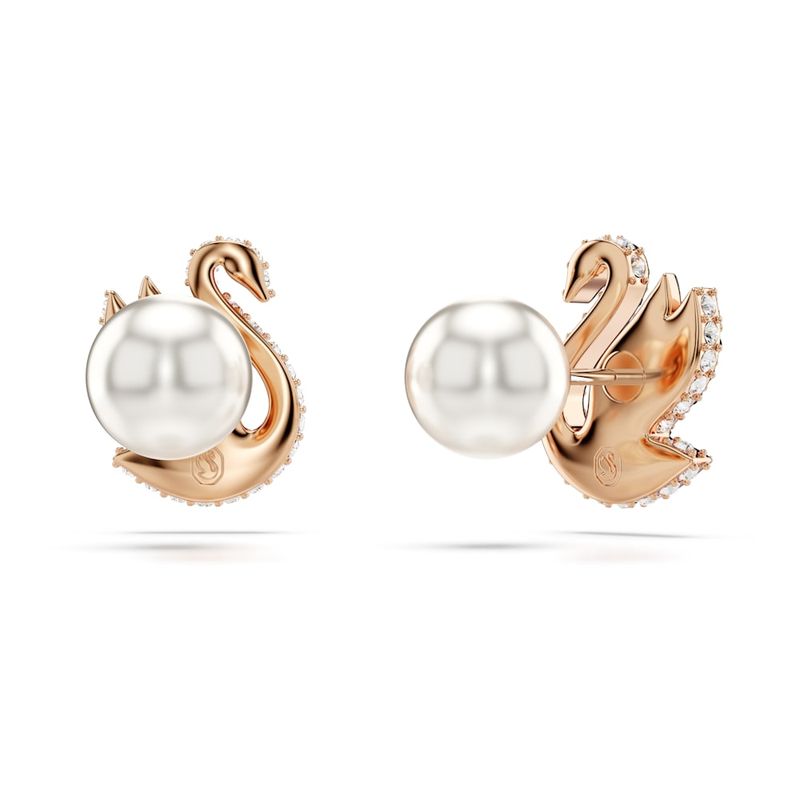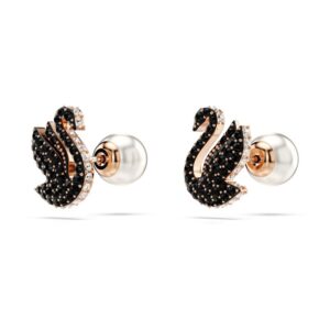 Inspired by Swarovski’s signature emblem, these elegant earrings feature a swan preparing to take flight. Each rose gold-tone plated piece features a single Crystal Pearl closure alongside an elegant swan motif, expertly embellished with Jet Black pavé-set Swarovski ReCreated™ crystals. These sophisticated earrings can be worn alone or paired with a matching pendant for ultimate glamour.