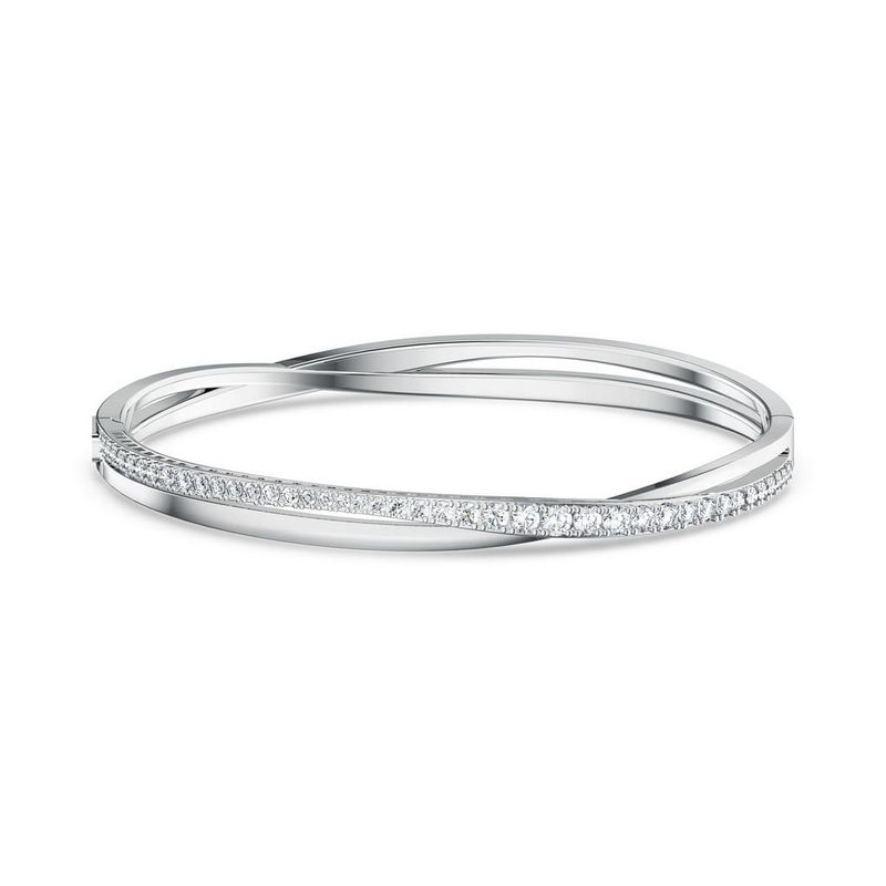 This beautiful Swarovski bracelet showcases a timelessly elegant and subtle design and is a modern interpretation of the swirl trend. A sparkling row of shimmering white stones follows the bracelet’s softly curved lines, adding sparkle and shine to the design. Modern and refined, this bracelet complements your everyday looks with a touch of brilliance.