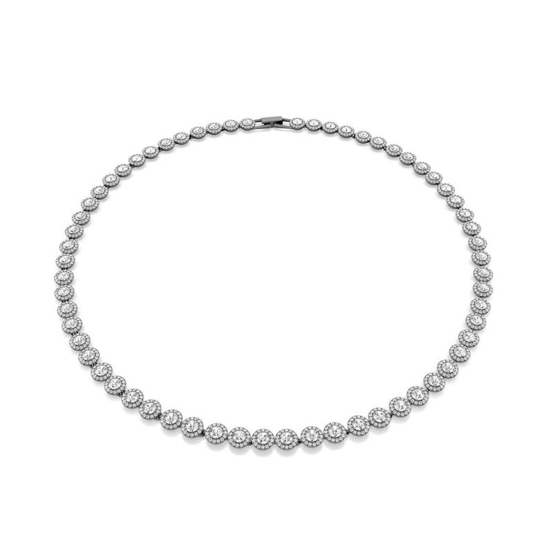 Una Necklace, Round Cut, Long, White, Ruthenium Plating