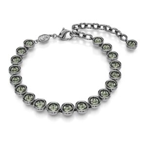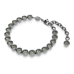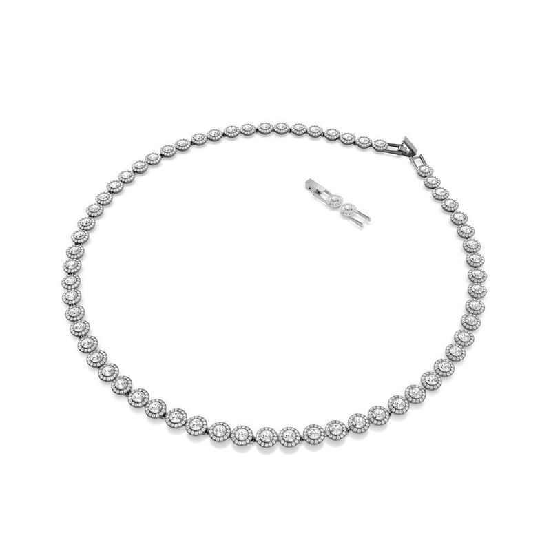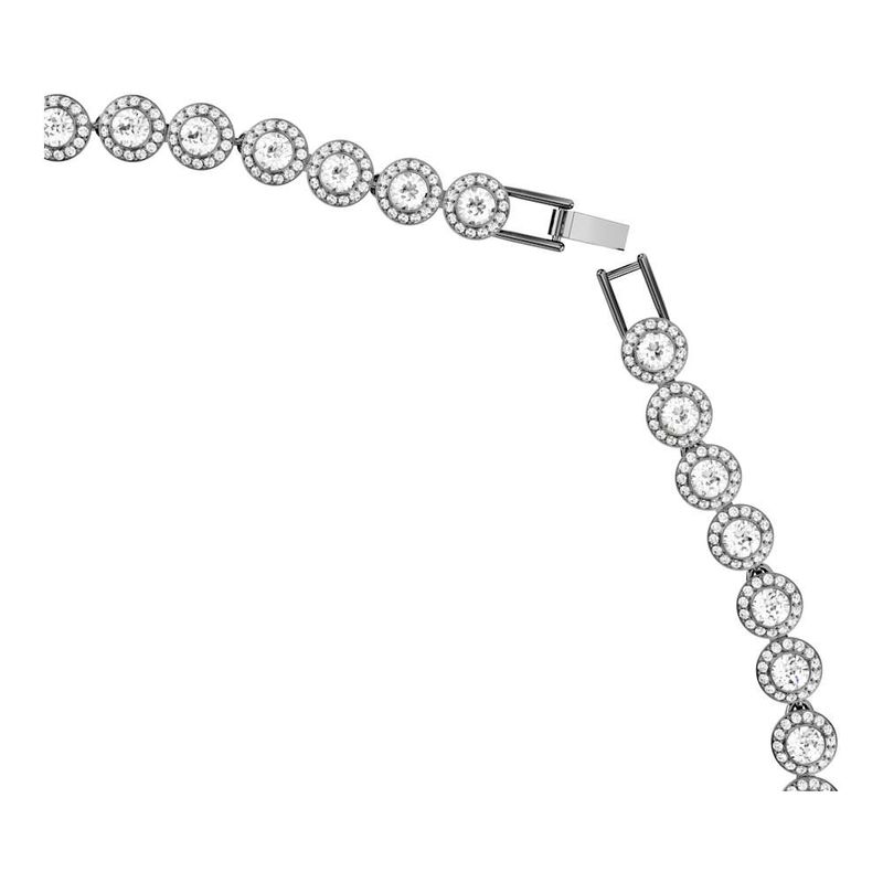 Make every day shine brighter with this luminous Una necklace. Longer than the standard Una Angelic necklace, the ruthenium-plated design features individual links, each set with a sparkling center crystal and a halo of smaller round-cut crystals. A dramatic style that can be layered with matching pieces from the same family.