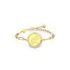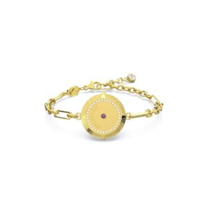 This star bracelet is a beautiful way to connect with the universe and celebrate the Aquarius zodiac sign. A gold-tone plated coin surrounded by a link bracelet, it is designed especially for this family. On one side of the coin, the Aquarius constellation is encrusted in crystals on a glittering background and surrounded by a circle of sparkling pavé, while the other side features “Aquarius” engraved on a sandblasted background with a single purple stone in the center surrounded by a circle of shimmering pavé. The intricate details of this piece evoke a mystical and magical feeling. It would make a very meaningful gift for yourself or someone special.